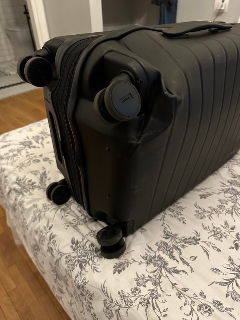 - Away customer service replaced it quickly, no long forms or phone tag. That kind of warranty and brand accountability is rare. (Needless to say the airline took zero responsibility.)